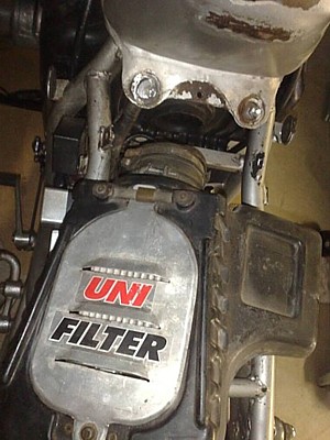 Well it's not like we have much of a choice with the pods, anyhow. The fact is that the original airbox set-up can't be coaxed to fit onto the very-much larger intakes of the GSX-R carbies. So, pods it is. However, your standard pods (which fit GS1000's and the like) are too small as well. Thankfully, K&N make a 'dual flange oval' filter to fit the GSX-R carbs the RU-2922. The trouble is, it's fairly expensive for a pair of the suckers.
