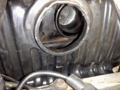 As you can see, the side of the orifice (red arrow) has been worn away by the needle. Sadly, this can happen very quickly; the jet in this photo had only about 8000kms of use mate, I get a better run out of a set of tyres. And the symptoms? Well, the bike had started bogging-down whenever I took off from the lights; and the last straw was when it got so bad that it started stalling. "Surely the needle jets can't be worn already?!" I thought but upon whipping them out for a quick inspection, the oval-ness of the hole in the jets was easily visible to the naked eye. Blast!