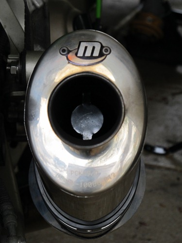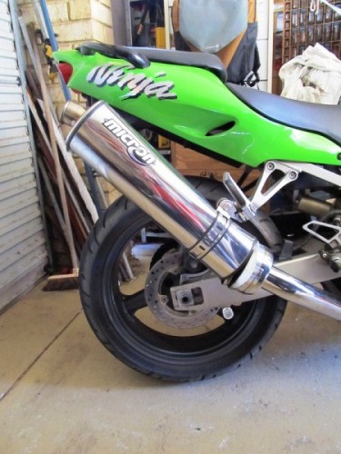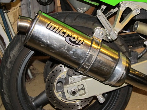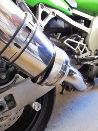 The only damage was the ZX's muffler, as well as a bit of a bent number plate. The latter I can live with, but the former was stuffed: